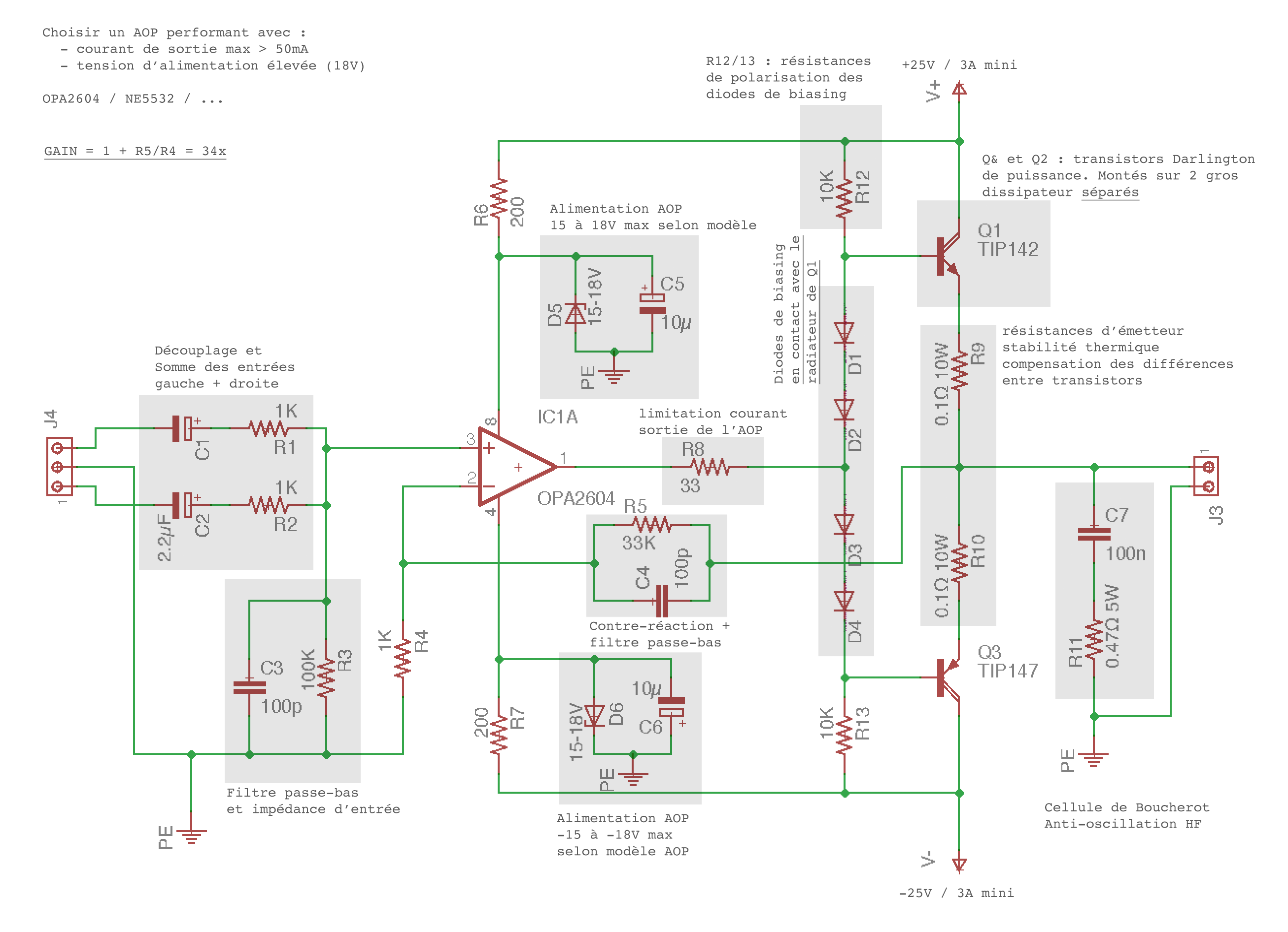 Cet article n'est pas une revue en profondeur du fonctionnement détaillé de l'ampli. Le sujet est trop vaste et je ne vois pas trop l'intérêt pour le lecteur de lire du Douglas Self mal paraphrasé ! Voici tout de même les grandes lignes :