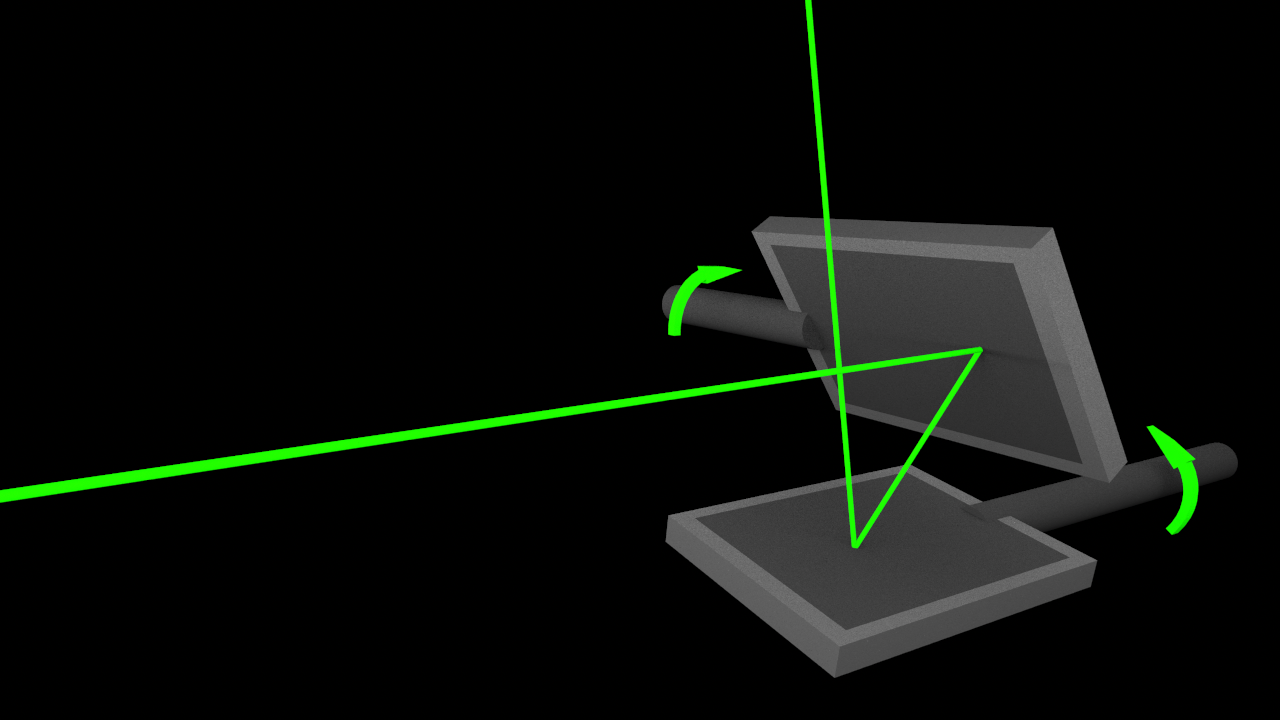 On peut obtenir de bien meilleures performances, c'est à dire des dessins géométriquement corrects et rapidement exécutés en mettant en oeuvre un système en boucle fermée. C'est ce que j'ai tenté ici, voici un modèle de principe du galvo-miroir (mais d'autres configurations sont bien sûr possibles) :