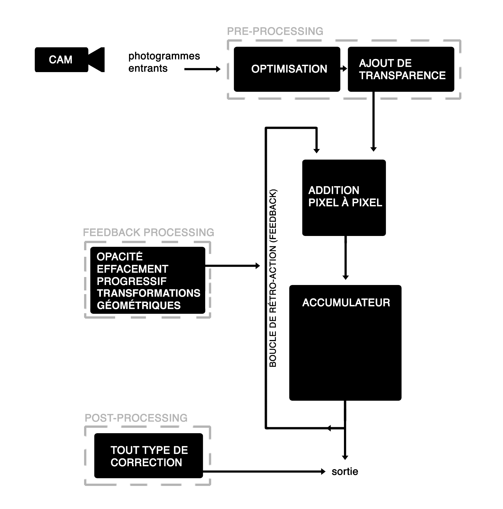 Cet article fait suite à ces recherches, visant à reprogrammer le système d'accumulation vidéo des spectacles Human Brush, Méduses et Skia en HTML5 / Javascript et utiliser un navigateur moderne comme environnement d'exécution.