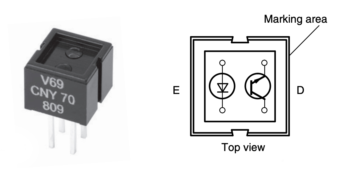 Ici j'ai utilisé un capteur infrarouge en réflexion prévu pour les courtes distances, le CNY70 :