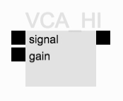 Amplificateur dont le gain peut être commandé par une source externe. Cette version "hi gain" accepte des gains entre 0 et 1000. Utiliser cet élément pour moduler une fréquence.