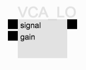 Amplificateur dont le gain peut être commandé par une source externe. Cette version "low gain" accepte des gains entre -2 et 2. Utiliser cet élément pour moduler l'amplitude d'un son.